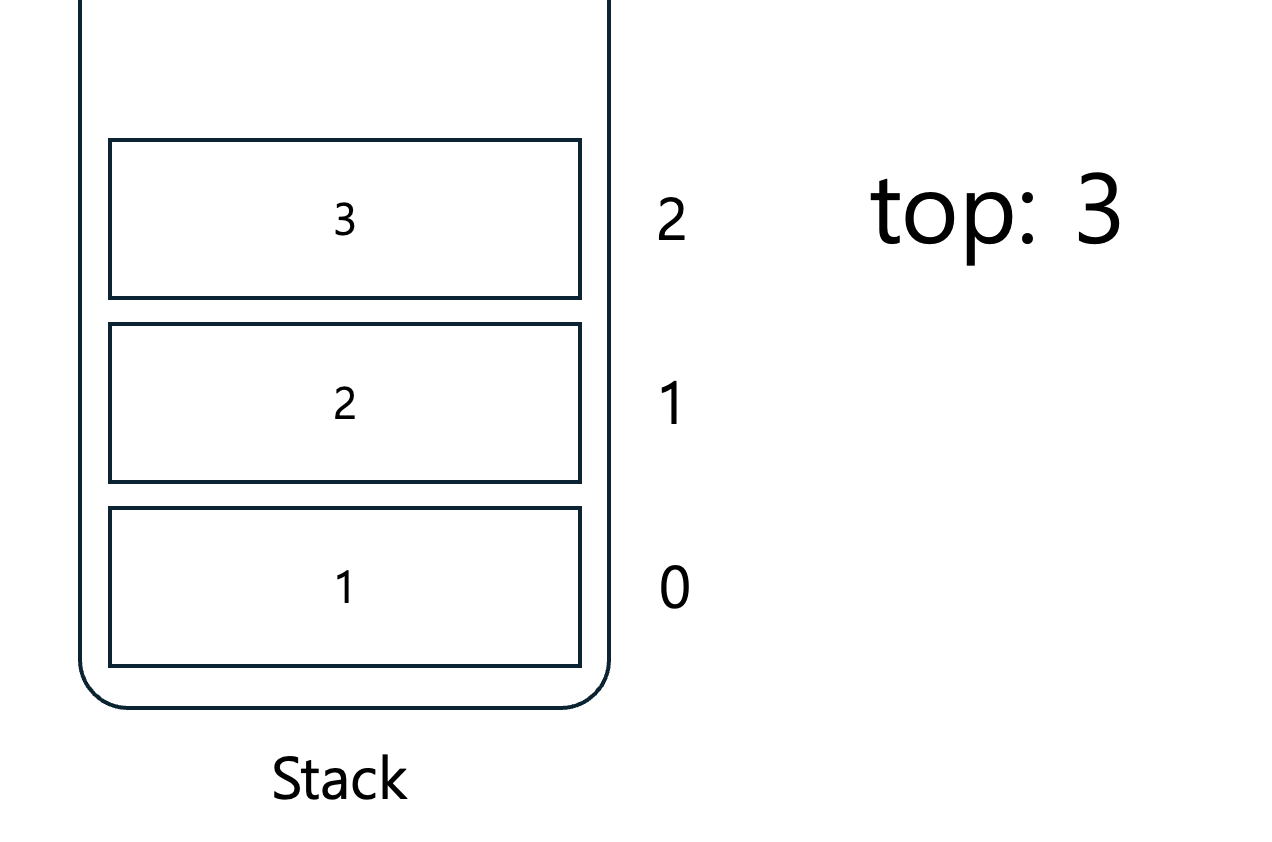 1, 2, 3을 순서대로 Push 해준다. 스택에 짜인 메커니즘을 좀 살펴보면