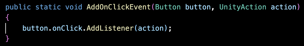 버튼에 AddListener를 통해 이벤트를 추가해주는 함수인 AddOnClickEvent를 만들었는데