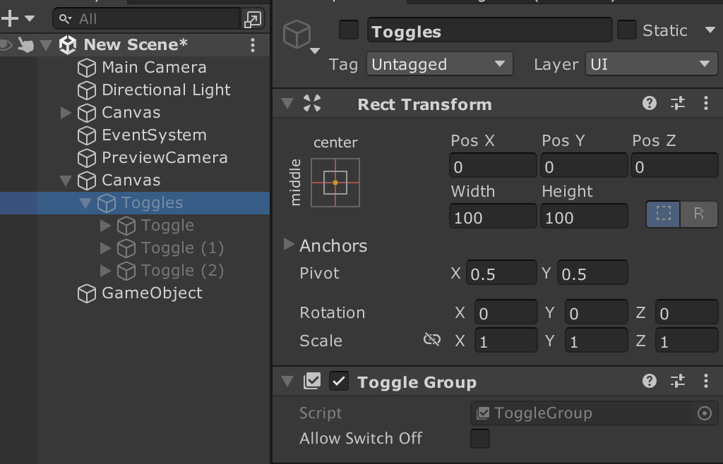 이는 토글그룹이 달린 부모 오브젝트가 비활성화되어 있기에 토글 그룹도 비활성화가 되었기 때문이다.