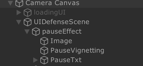 가장 위에 올라와야하는 저 글씨 PauseTxt 에 찾아가 Canvas 컴포넌트를 달아준다.