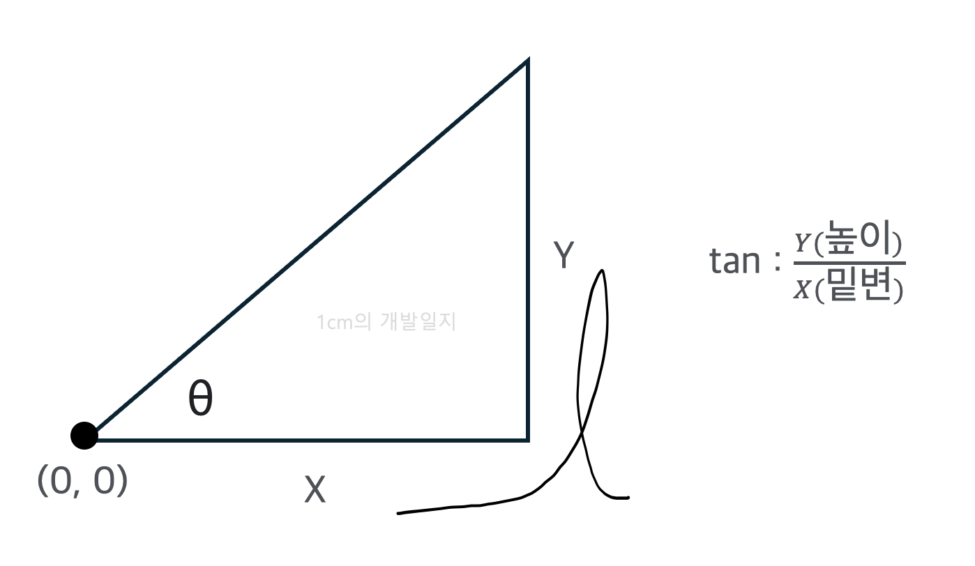 여기서 우리가 주목해야할 것은 탄젠트이다. 탄젠트의 경우엔 밑변 분의 높이의 값을 가지고 있는데