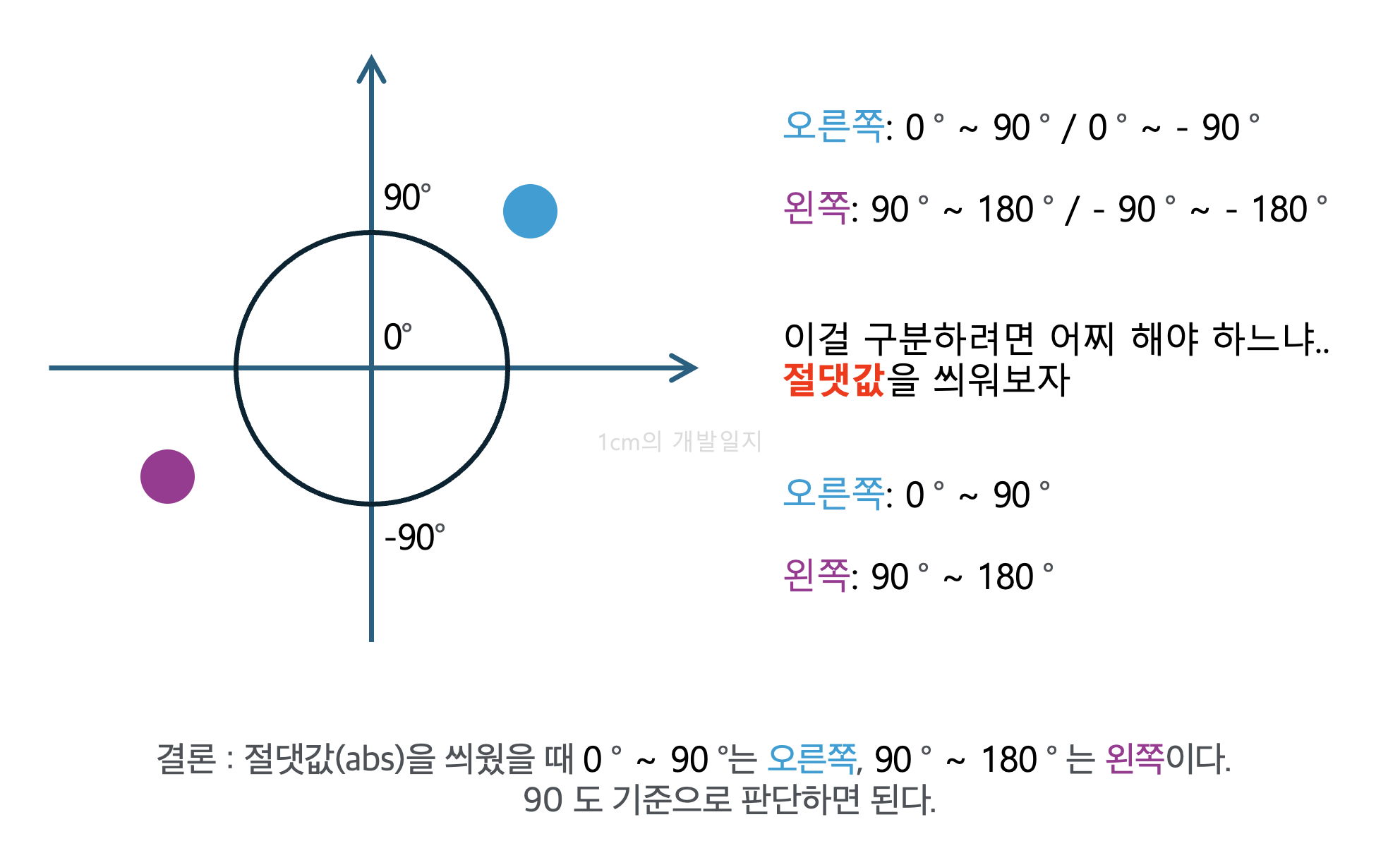 절댓값(abs) 기준으로 0 ~ 90도면 마우스가 오른쪽, 90 ~ 180면 마우스가 왼쪽에 위치하므로 위와 같은 코드가 나오게 된다.