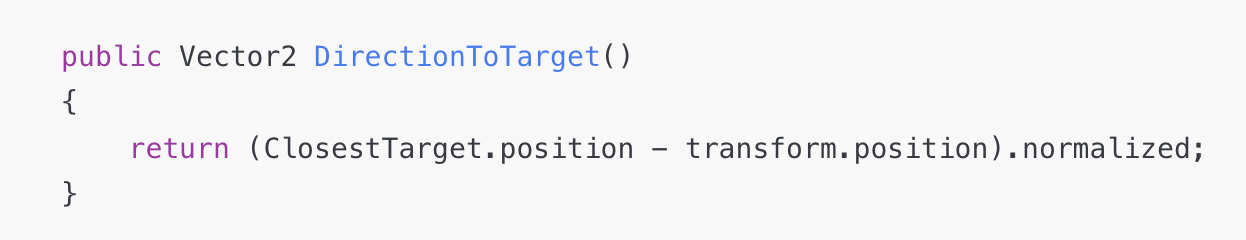 사실 transform.position - ClosestTarget.position을 해도 거리는 같기는 하다. A에서 B를 향하는 거리나 B에서 A를 향하는 거리는 같기 때문... 벡터 간의 거리 계산은 방향과는 무관하다는 점도 알아두면 좋다.