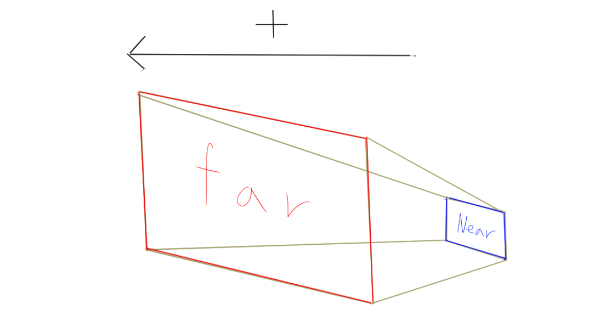 이처럼 Perspective의 카메라를 보면 각뿔을 절단한 모양을 하고 있는데 이러한 것을 절두체(frustum)이라 한다.