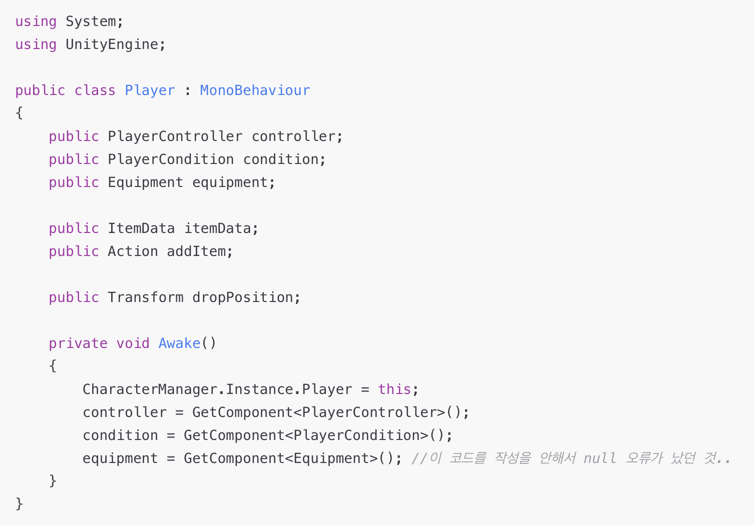 else if (CharacterManager.Instance.Player == null) Debug.Log("CharacterManager.Instance.Player가 null입니다.");