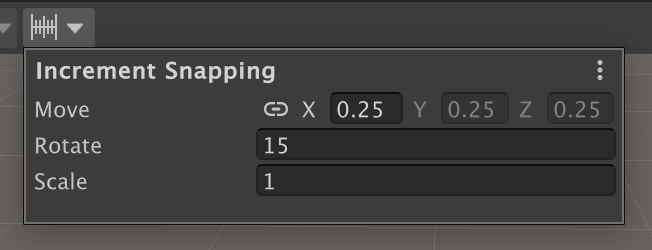 씬 뷰에서 Ctrl(win)/Cmd(mac)을 누른채 이동 시키면 Increment Snapping에서 설정한 사이즈(기본: 0.25)에 맞게 오브젝트 이동이 가능하다.