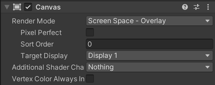 위의 사진에서 PAUSE라는 글씨위에 X와 체크 표시가 위에 올라가서 보기 좋지 않은 모습이다. PAUSE라는 글씨는 여러 복잡한 이유로 캔버스를 이동시킬 수는 없는 상황이였고 이럴 때 쓸 수 있는 것이 Canvas의 Override Sorting이다. 가장 위에 올라와야하는 저 글씨 PauseTxt 에 찾아가 Canvas 컴포넌트를 달아준다. 그냥 달아주기만 하면 안되고 Override Sorting을 체크하고 Order in Layer를 높게 설정해주자 여기선 20정도로 설정해주었다. 다른 UI요소들은 Order in Layer가 0~10 사이였기에 가장 높게 준 것이다. 이렇게하면 의도대로 PAUSE 이팩트가 맨 위로 올라가게 된다. Override를 해서 사용하기 때문에 캔버스를 아예 하나 더 ..